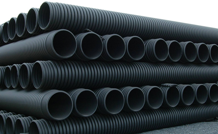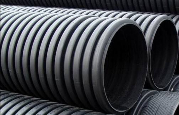 HDPE雙壁波紋管是由HDPE同時擠出的波紋外壁和一層光滑內壁一次熔結擠壓成型的,管壁截面為雙層結構,其內壁光滑平整,外壁為等矩排列的具有梯形中空結構的管材。具有優異的環剛度和良好的強度與韌性,重量輕、耐沖擊性強、不易破損等特點,且運輸安裝方便。管道主要采用橡膠圈承插連接(也可采用熱縮帶連接)。
