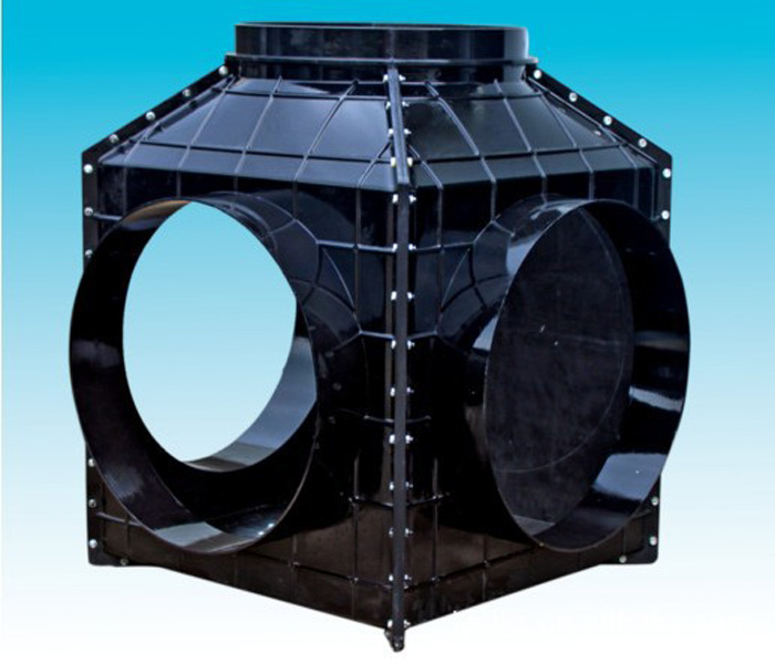 其中關鍵的井座部分采用一次性注塑成型,以變徑接頭、可變角接頭及密封圈等配件來達到改變管徑及角度的連接。檢查井配套開發了注塑成型的井蓋、井筒 、井座,路面載荷通過井蓋、井座作用于檢查井周圍,避免了路面載荷對檢查井的破壞,蓋座具有上下浮動的功能,可主動適應路面的高低變化,同時井筒采用專用井筒,可根據現場埋設深度截取相應長度,具有很大的靈活性。井筒、進(出)水管道與井座的連接采用橡膠密封圈柔性連接,可適應小范圍的內角度變化,施工方便快捷,密封性能好、有效防止滲漏,環保節能。